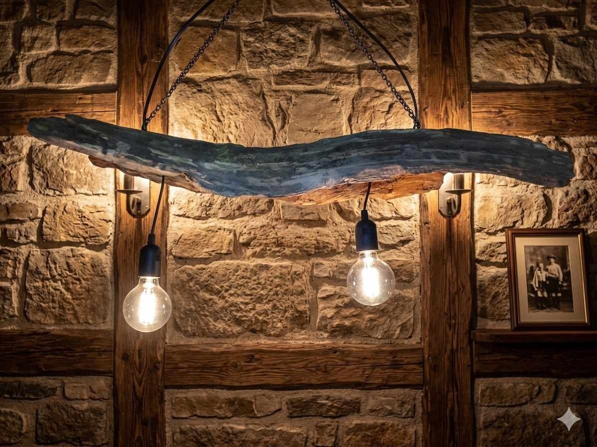 Suspendu avec élégance, ce modèle joue sur un contraste harmonieux entre matière naturelle et design industriel, avec ses ampoules apparentes qui diffusent une lumière chaleureuse et authentique. Il devient ainsi bien plus qu’un éclairage : une véritable pièce maîtresse qui attire le regard et crée une ambiance unique.