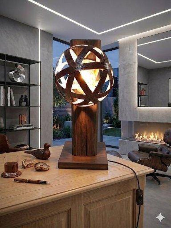 Sphères du temps associe une structure verticale en bois à une sphère lumineuse, comme figée dans l’instant.